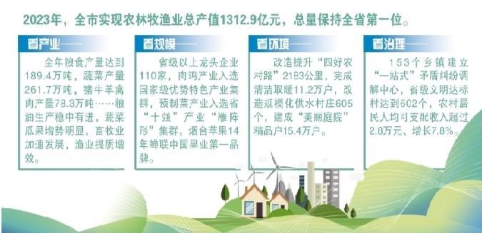 作为农业大市,做好“三农”工作,烟台有实力、有底气。去年,全市实现农林牧渔业总产值1312.9亿元,在全省率先突破1300亿元大关,总量继续保持全省第一位。
