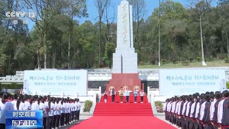 在四川宜宾市烈士陵园,当地各中小学师生代表、烈士家属以及市民群众代表等700余人,向人民英雄纪念碑敬献花篮。从3月份开始,宜宾市举行了“我给烈士写封信”活动,共收到全市中小学生的600多封来信,他们通过书信与英烈对话,传承红色基因,赓续红色血脉。