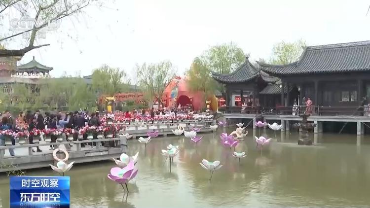在开封街头,一场清明踏春巡游正在热闹上演,表演者身着古装,与游客欢乐互动。各大景区也纷纷更新和推出了表演项目。