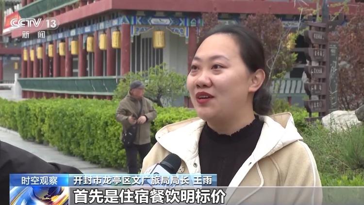 河南开封市龙亭区文广旅局局长 王雨:首先是住宿餐饮明标价,是为了让游客吃得放心,共享单车随心骑,让游客能把单车骑过来,也能方便找到骑走,我们还发布了一条举措就是外来车辆,在我们辖区的公共单位免费停车。