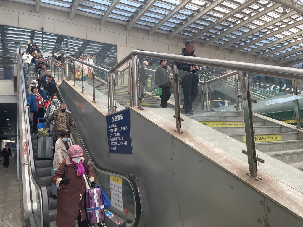 4月5日上午9时许,烟台站迎来了拎着大包小包有序进站的旅客。安检口、扶梯处、候车室,随处可见步履匆匆的出行人员。