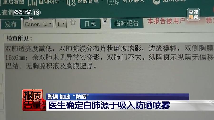 长沙市第三医院呼吸与危重医学科副主任医师 范杜:如果出现了这些症状的话,医生问起来的时候,你要想起你是喷过了防晒喷雾,然后就给医生有一个提示,他就会联想到这个过敏性肺炎或者一些不可逆损伤。