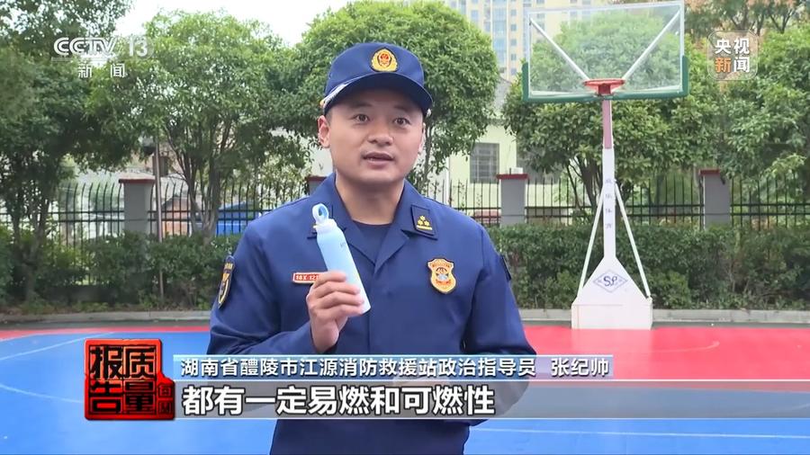 湖南省醴陵市江源消防救援站政治指导员 张纪帅:防晒喷雾剂是近几年市场上非常流行的产品,但对于我们消防而言,它既新鲜又不新鲜。为什么这么说?因为能够喷的产品,罐体内都有一定压力。而且所有的防晒喷雾剂它都有推进剂,像这款防晒喷雾剂它的推进剂成分标明了有丁烷、丙烷、异丁烷,大家都知道这些成分都有一定易燃和可燃性,如果我们在操作和使用过程中稍有不慎,可能会带来安全风险。