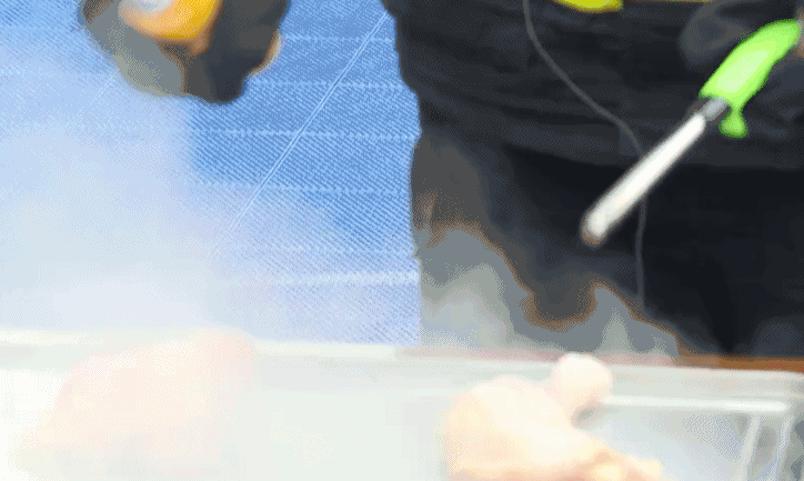 当消防人员往鸡腿上面喷洒了防晒喷雾后,附着在鸡腿表面的防晒喷雾是可以被点燃的;从镜头中就能清楚地看到喷洒过防晒喷雾的猪皮经过火源后上面的猪毛已经全部烧焦,可以想象在往面部喷洒防晒喷雾的时候,头发上面也必然会沾染雾化的微粒,这些都可能成为安全的隐患。