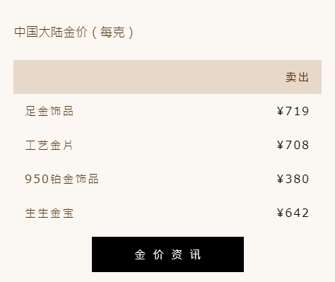 金价在国际市场一路飙升,国内基础金价也到达高位。国内不少品牌的足金饰品零售价也已接近每克720元。