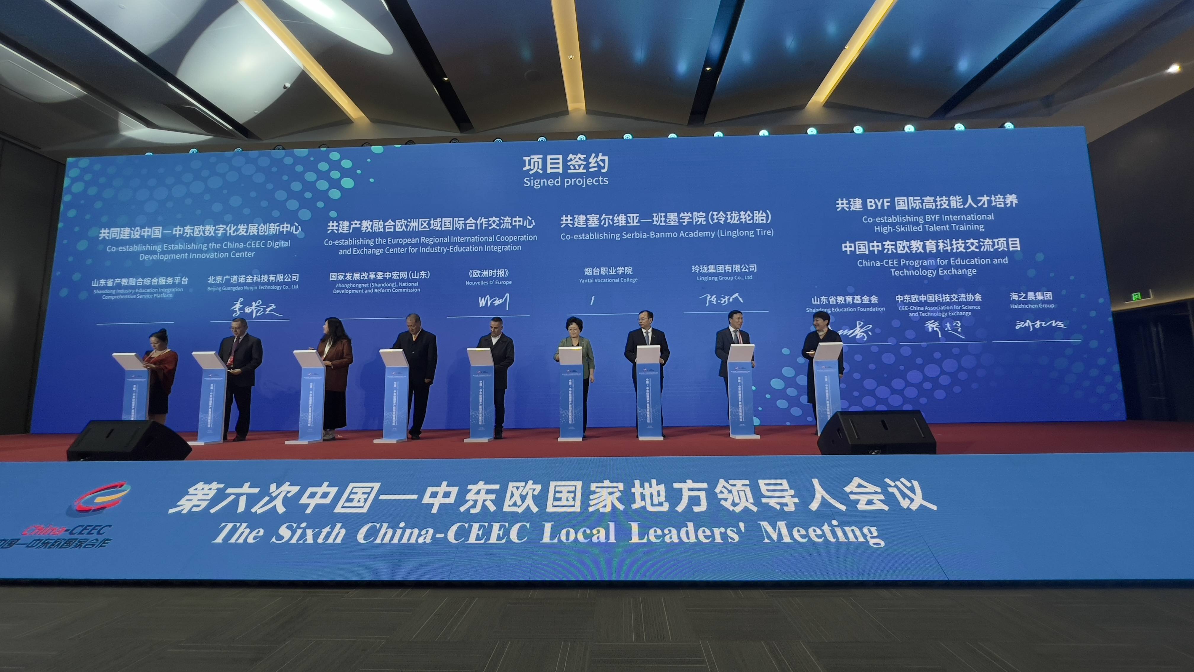 论坛期间,举行了中国(山东)—中东欧国家产教融合联盟、中国(山东)—中东欧国家科教产融汇发展中心和产教融合国际发展联盟的启动仪式,现场签署了“共建产教融合国际(匈牙利)示范园”“共建塞尔维亚—班墨学院”等9个合作项目,进行了赛事和新书发布,并为中国(山东)—中东欧国家产教融合联盟理事长、副理事长单位授牌,为特聘专家颁发证书,发起了产教融合国际合作发展倡议。