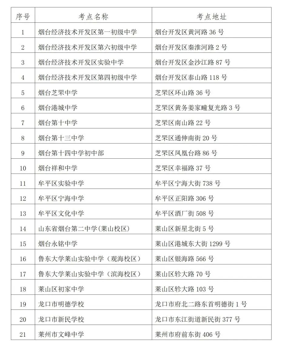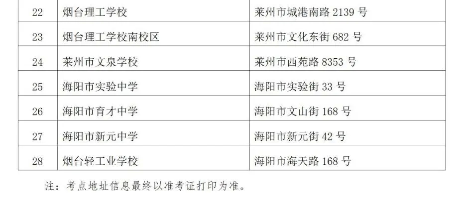 烟台市教育招生考试院一并公布考点信息,共设28个考点,考生可提前规划赴考事宜。