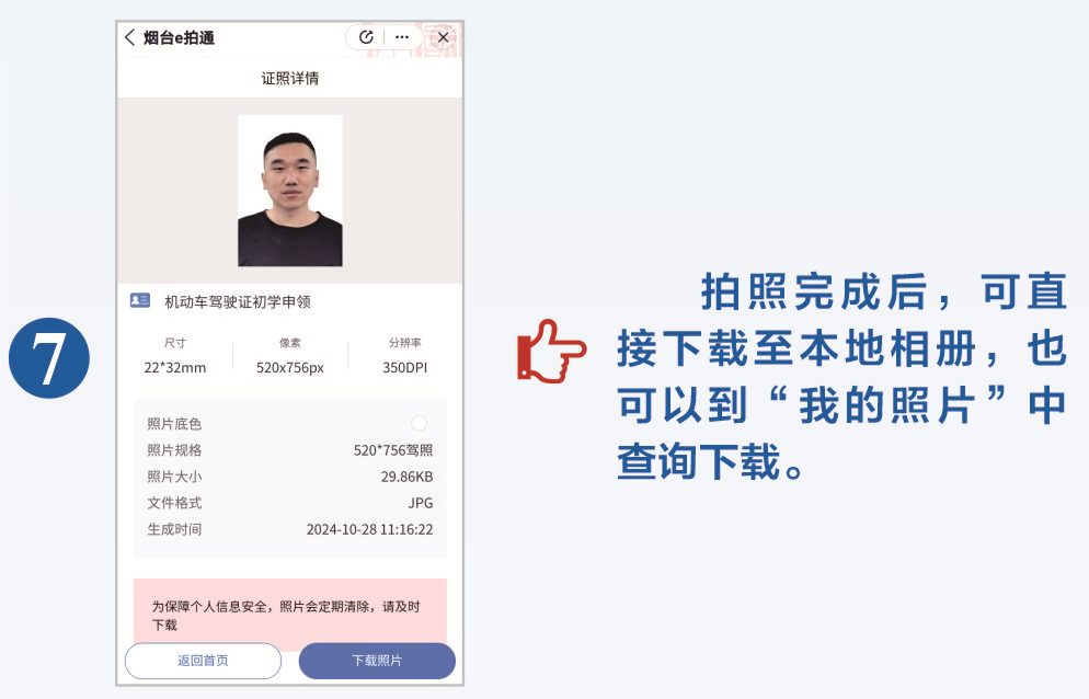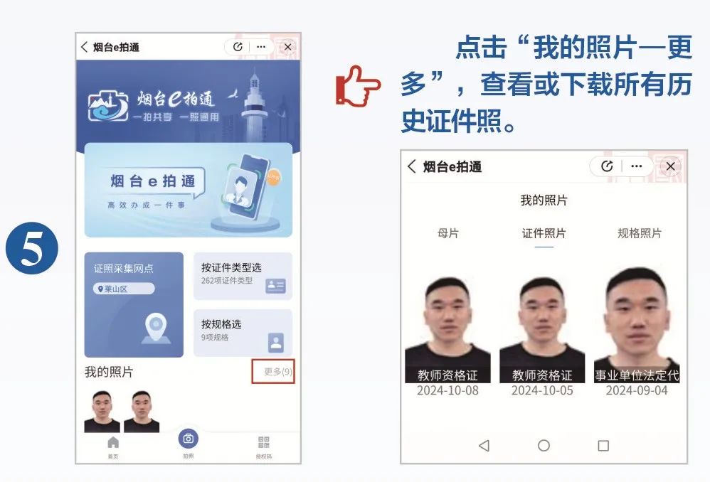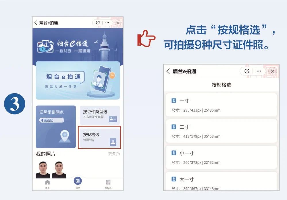 烟台市公安局在烟台市政管办、大数据局的全力支持下,打通政务服务之间“共享不畅”的业务壁垒,研发了“烟台e拍通”系统,搭建全市统一照片库,优化照片采集应用流程,只要一次拍照,可自动剪裁生成262项政务服务、公共服务事项证件照片,实现跨警种、跨部门、跨层级“通用”,不需群众再重复拍照。