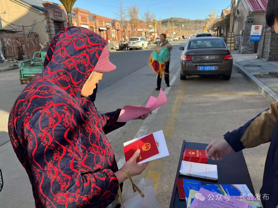 长岛区工委政法委在步行街西首向群众分发《宪法》《安全生产法》《以案释法大众读本》《山东省长岛海洋生态保护条例》等普法材料。工作人员面对面讲解法律法规,积极向过往群众宣传长岛海洋生态保护法律法规,并对群众提出的法律咨询进行了详细解答。