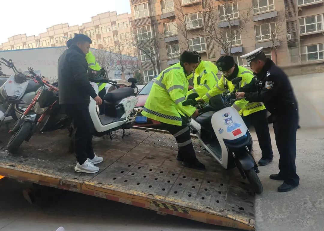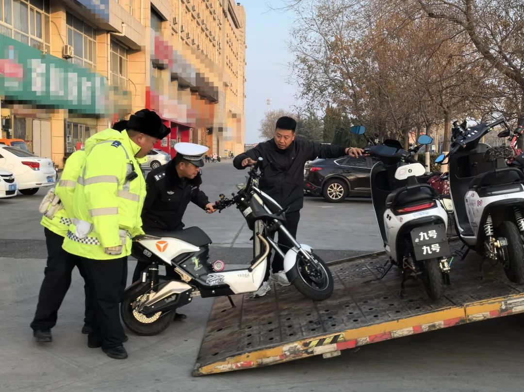 行动中,采取“拉网式”“地毯式”排查方式,对非法改装、无牌“电摩”进行暂扣拖移,并告知车辆所有人到交警部门接受处理。
