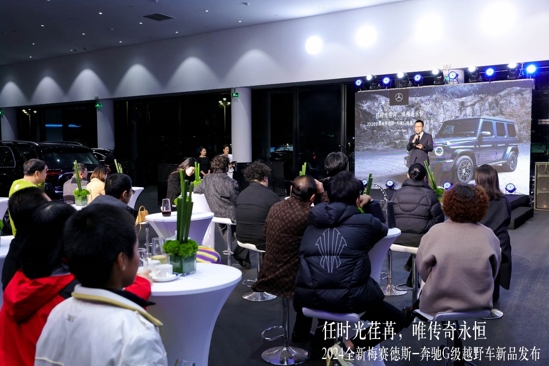 活动现场,奔驰G级车老车主进行了分享,表达了对G级越野车的深刻情感与爱车间的故事,并表达了对全新G级越野车的期待与认可。随后,车主代表与店内市场部负责人共同进行了G级车的揭幕仪式,将活动推向高潮。新款G级车在众人的瞩目下缓缓露出真容,其霸气侧漏的外观和豪华精致的内饰赢得了在场观众的阵阵掌声。