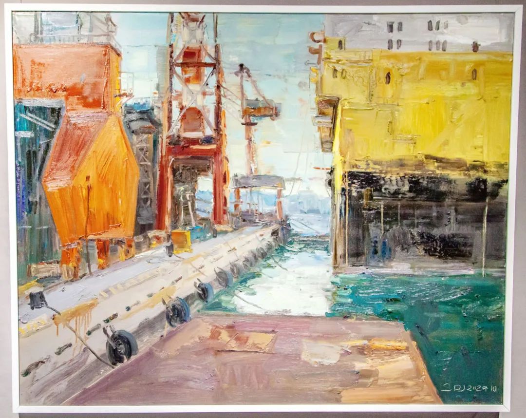 12月22日,由烟台市文联和芝罘区委宣传部主办的2024“大国工匠·重器”美术作品展在芝罘岛华宇大饭店刘泽文艺术馆举办,现场展出10位画家新近采风创作的油画和国画作品40幅。