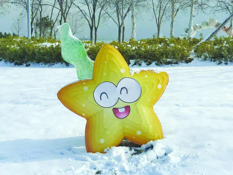 烟台融媒1月13日讯(记者 杨春娜 通讯员 蔡佩征 摄影报道)白雪掩映中,微笑的海星,欢快的小鱼让虞美人广场多了一份色彩,由烟台市数字化城市管理服务中心组织建设的迎春灯饰在虞美人广场进行安装,年味扑面而来。