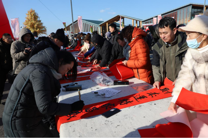 组织文化志愿者到玉林店大集、王格庄镇以及姜格庄街道开展“写春联 送福字”文化进万家志愿服务活动,在新春佳节来临之际送上祥和、喜庆的节日祝福,让人民群众共享文化惠民成果。
