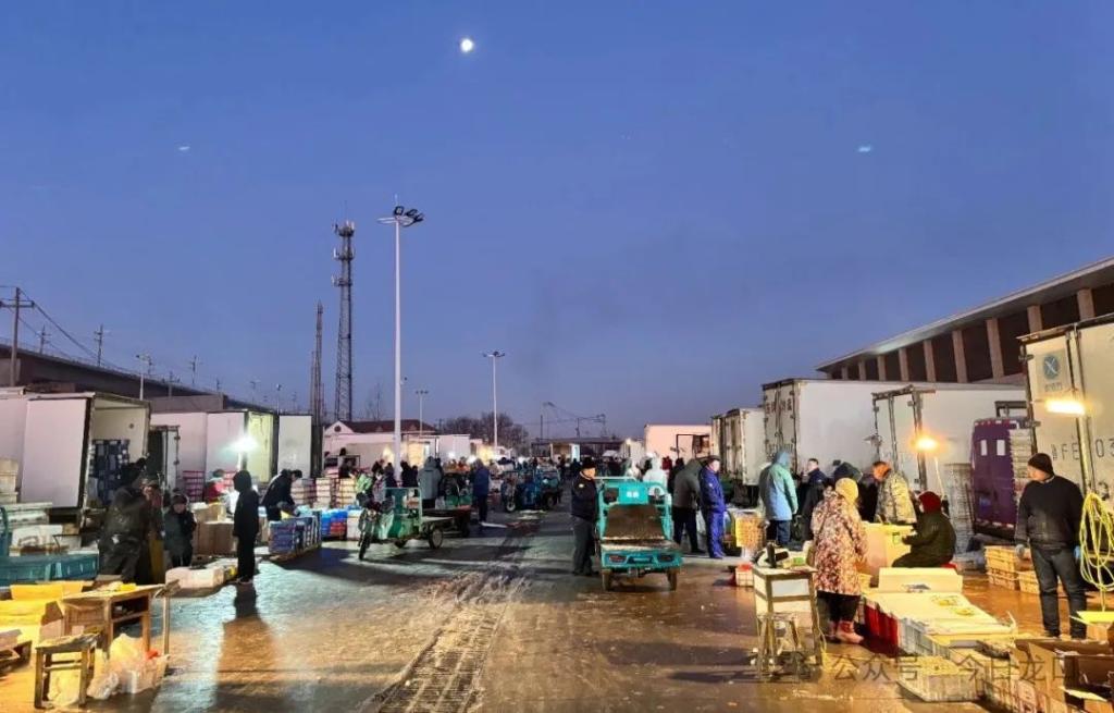凌晨4点,嘉元农贸市场南侧,灯火通明,热闹非凡。