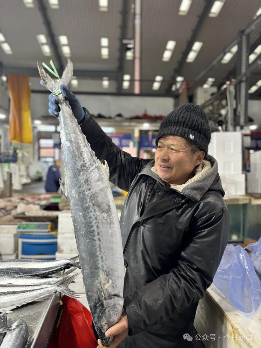 在商贩段吉臣的摊位前,多位市民正在挑选大鲅鱼。一条大鲅鱼十几斤,看起来“鲅”气十足,是春节送礼的好选择。“一早上打包了十来条,大鲅鱼口好、味道好,过年吃老香了!”