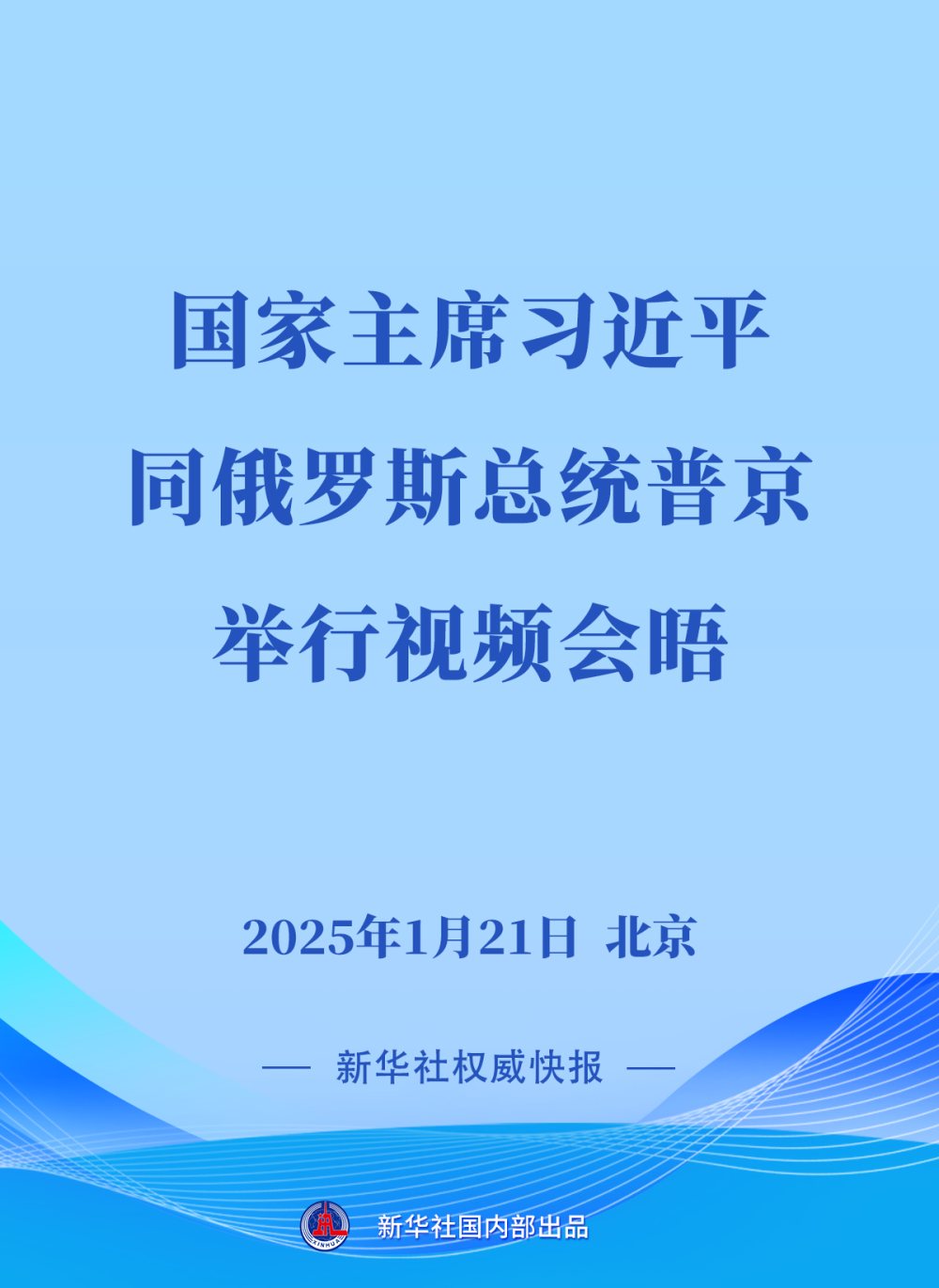 1月21日,国家主席习近平在北京同俄罗斯总统普京举行视频会晤。