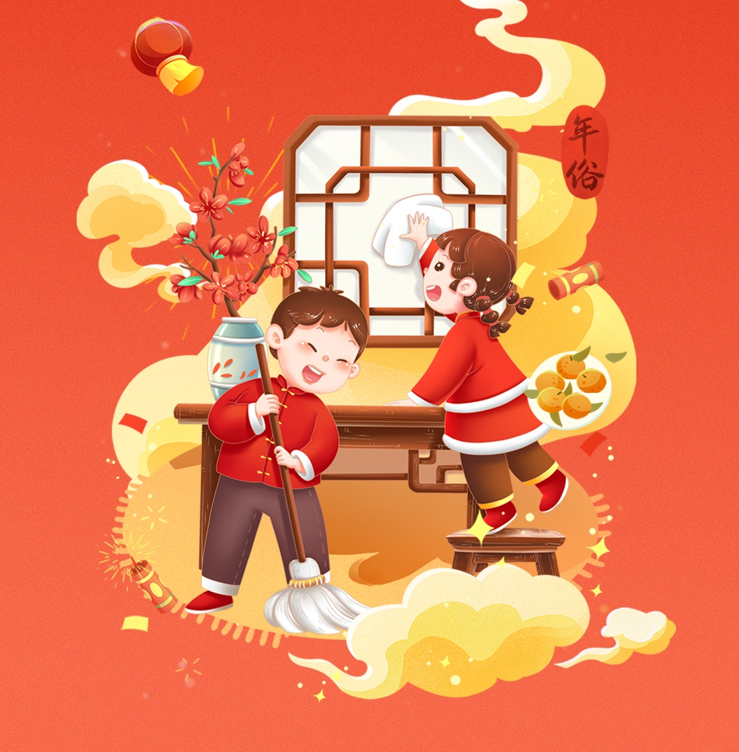 这可是腊月二十四的重头戏!家家户户都要进行年终大扫除,北方叫 “扫房”,南方叫 “掸尘”。大家会彻底清扫屋内屋外,上到屋顶墙角的蛛网,下到地板缝隙的灰尘,都不放过。还要擦拭家具、清洗衣物、拆洗被褥,把家里打扫得干干净净,焕然一新,迎接新年的到来。