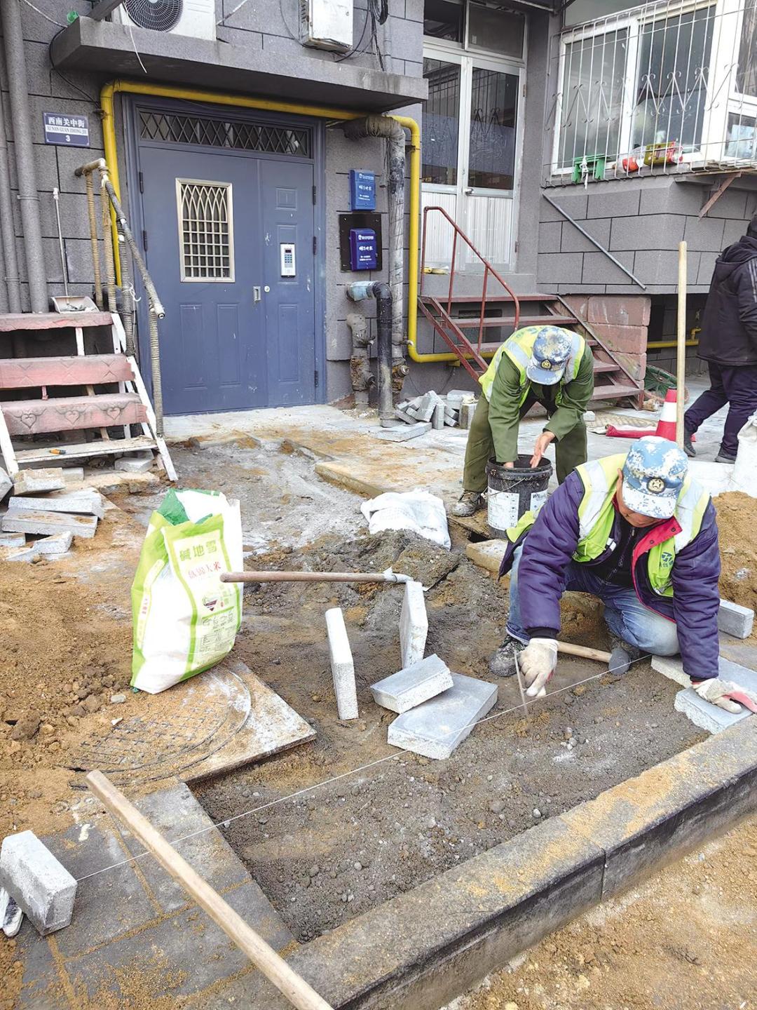 烟台融媒1月23日讯(记者 柴向阳 摄影报道)21日,经过施工人员一上午的挖土、铺砖施工,芝罘区西南关中街3号楼前道板砖全部归位,路面恢复畅通。