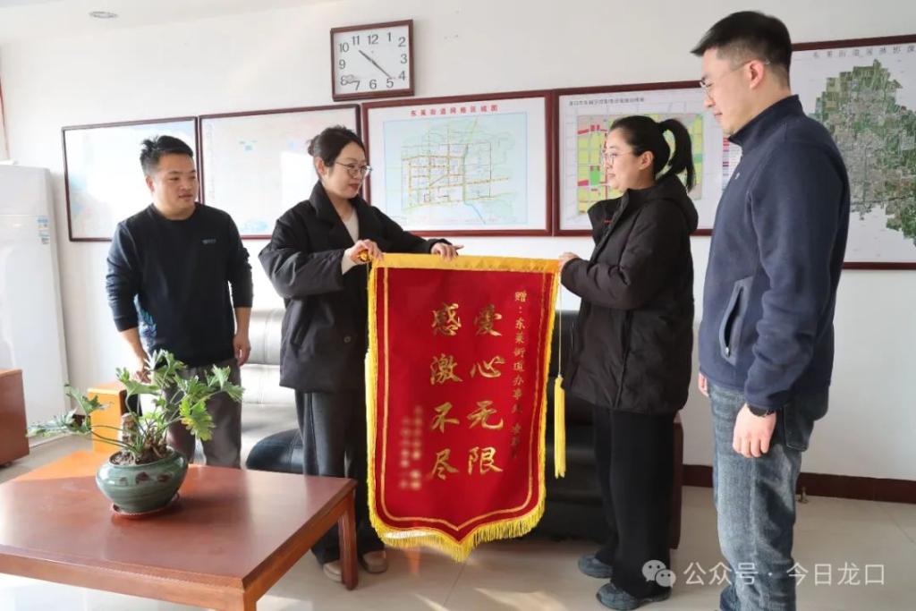 1月21日上午,高大叔在烟台上班的大女儿专程赶回龙口,分别前往东莱街道办事处和龙族誉珑府小区物业,送上锦旗以表谢意。“多亏了对门的好邻居和物业工作人员,要是没有他们及时发现并救助,大冬天的,老人一直躺在地上,真不知道会出什么事。”