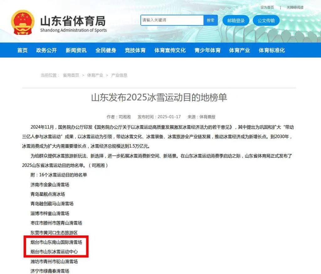 近日,山东省体育局确定山东南山国际滑雪场等16家冰雪场馆为“2025山东省冰雪运动目的地”,我市山东冰雪运动中心与山东南山国际滑雪场成功入选。