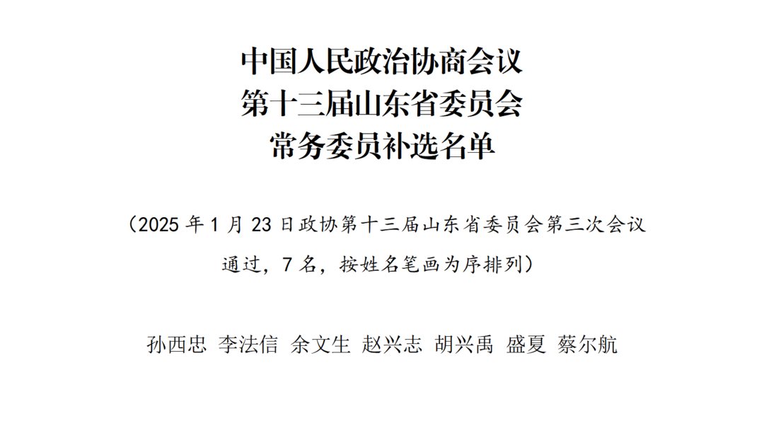 中国人民政治协商会议第十三届山东省委员会常务委员补选名单