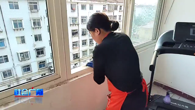 家政服务员李大姐在记者采访的时候,已经干完了三位客户家。今年50岁的她已经从事擦玻璃这个工作三年时间了,现在她每天最多能够擦四家客户的玻璃。