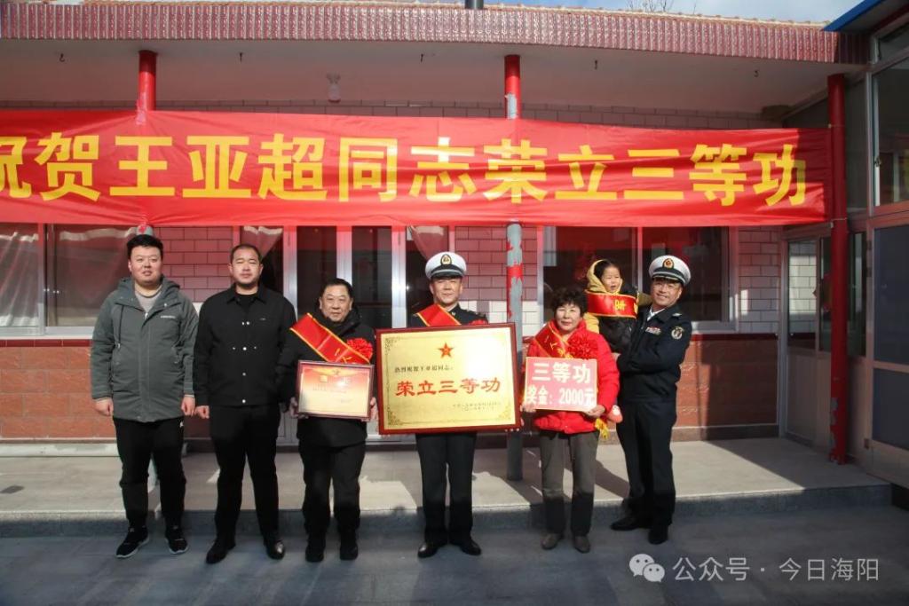“王亚超能拿到三等功,肯定是非常优秀的,尤其咱雷乡海阳出来的军人,在单位这十几年兢兢业业,业务很精湛,参加比武拿过第一名,他利用自己的技术特长带出来好多业务骨干,表现非常出色,被选为基地党代会代表。”部队领导说道。