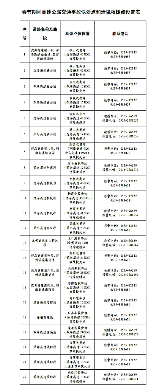2025年春节假期期间,全市高速公路将设置22处事故快处点和清障救援点,符合快速处理条件的交通事故应及时撤离,不得长时间停留在现场,以免造成交通拥堵及二次事故。高速公路遇交通事故请谨记“九字警句”:车靠边、人撤离、即报警。