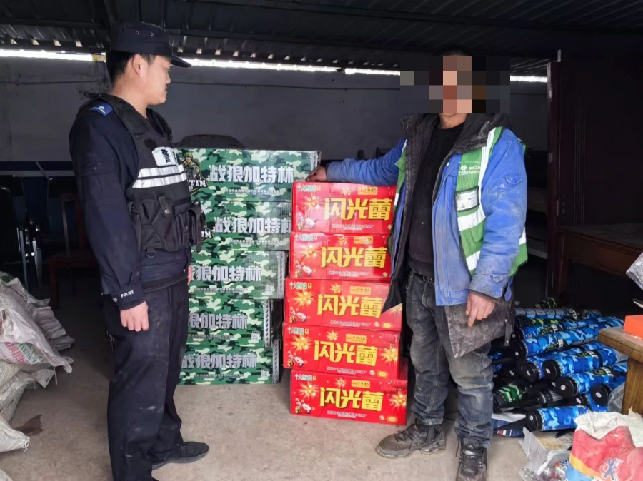 1月22日,开发区派出所民警在工作中发现,辖区杨某某涉嫌非法储存、销售烟花爆竹,经核查,其将大量烟花爆竹非法储存在自家仓库内,民警迅速对该仓库进行了依法查处,违法嫌疑人杨某某对其违法行为供认不讳,目前已被福山公安分局依法行政拘留。