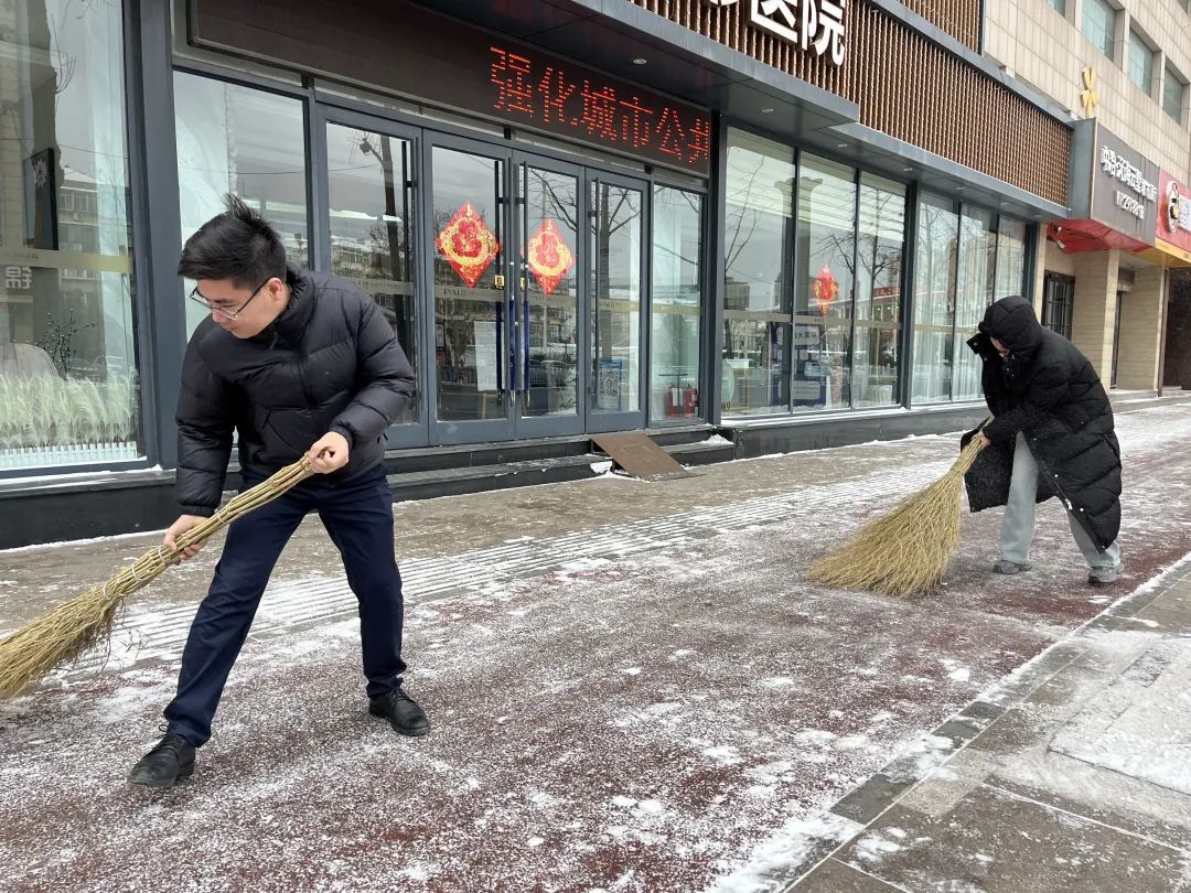 新桥东社区清扫背街小巷、台阶、坡路积雪