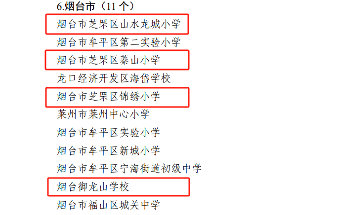 根据山东省“无废城市”建设工作专项小组办公室下发的《关于 2024 年山东省“无废细胞”建设情况的通知》,烟台市芝罘区山水龙城小学、烟台市芝罘区蓁山小学、烟台市芝罘区锦绣小学、烟台御龙山学校4家学校荣获省级“无废学校”称号。