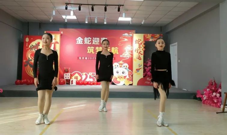 活动在充满活力的开场舞《爵士舞串烧》中拉开帷幕。舞者们身着华服,在五彩灯光的映照下,以灵动的舞姿诠释着新春的活力与热情,瞬间点燃了现场气氛。随后,一系列精彩节目轮番上演,充分展现了观里镇群众丰富多彩的文化生活和积极向上的精神风貌。