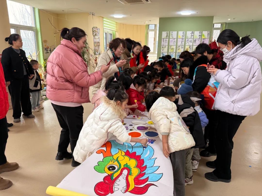 “二月二,龙抬头。天子耕地臣赶牛……”在“舞龙启幕,喜迎龙头节”环节,老师们带领幼儿齐咏经典歌谣,稚嫩的童声传递着对民俗风情的感悟与对美好生活的憧憬。紧接着,梦芝街道华盈社区的文化爱好者为师生进行了龙舞表演。龙舞作为国家级非物质文化遗产,其展现出的团结奋斗精神与天人和谐内涵,让孩子们深受震撼。随后,小朋友们也参与体验了龙舞,他们手举红色条幅扮作龙身,跟随鼓点穿梭,感受龙的威严与灵动。在“画龙添福气”环节中,大家以拓印和绘画的方式为象征祥瑞的“花龙”增添魅力。一系列活动将传统民俗、节气、文化等元素融入其中,让孩子们在活动中亲近民俗,了解传统节日,增强了对传统文化的热爱。