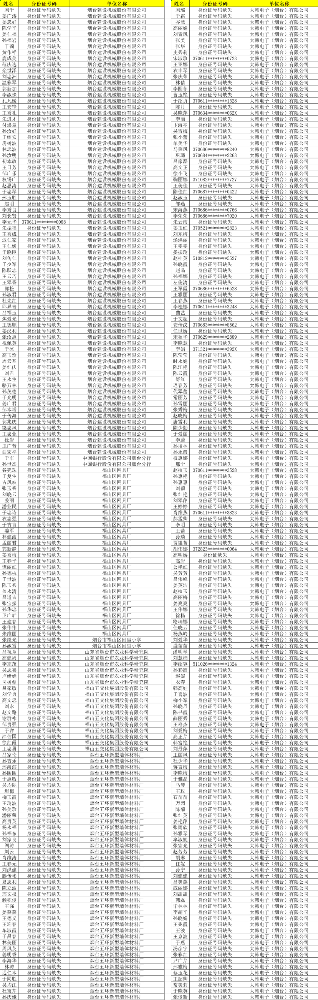 本批次名单为福山区缴存账户,涉及烟台建设机械股份有限公司、中国银行股份有限公司烟台分行、福山区网具厂、烟台市福山区回里小学、山东省烟台市农业科学研究院、福山五交化集团股份有限公司、烟台五环新型墙体材料厂、烟台塑料包装制品厂、福山区经济技术开发公司、娱乐中心、烟台福山石油公司、烟台市福山区城建综合开发有限公司、烟台银行股份有限公司福山支行、福山金属化轻公司、彩城金属贸易公司、中国人寿保险股份有限公司烟台市福山区支公司、烟台市福山区化学工业研究所有限公司、大韩电子(烟台)有限公司共18家单位658名缴存职工。