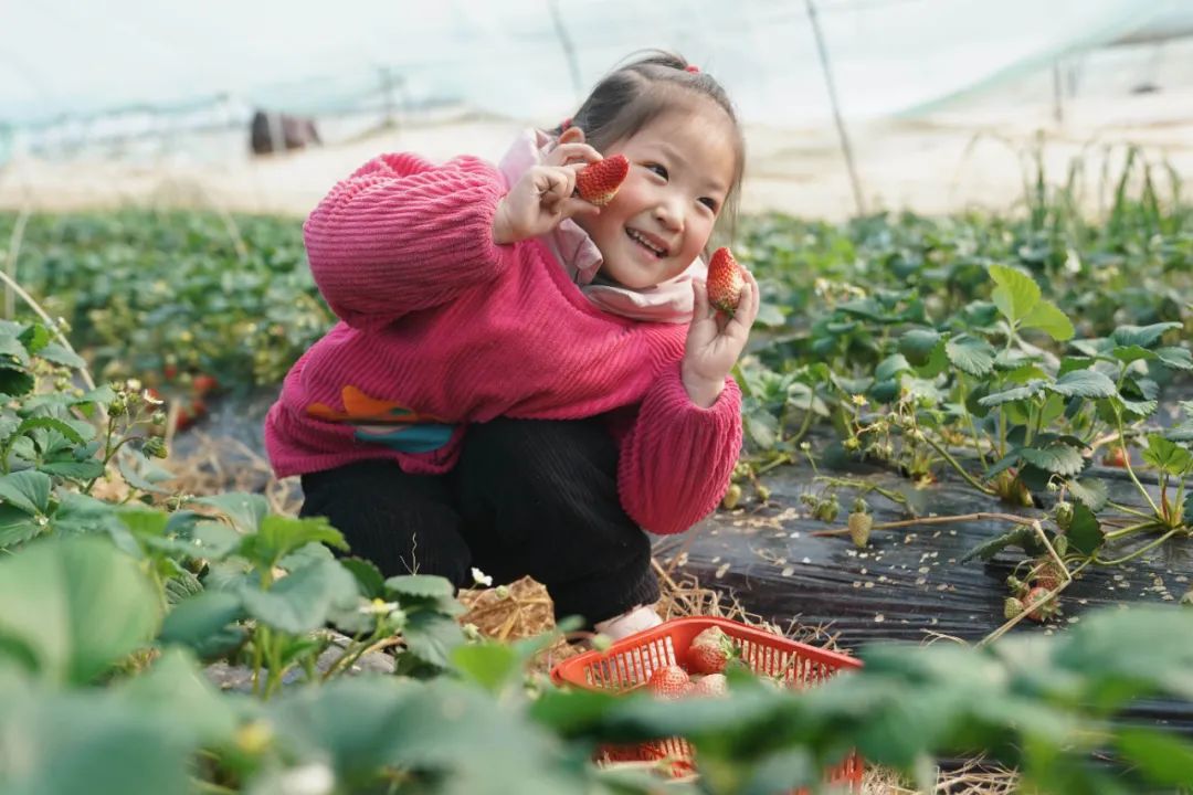 3月8日,在江苏省盱眙县天泉湖镇陡山村,游客在草莓大棚内采摘草莓。新华社发(陈雨禾 摄)