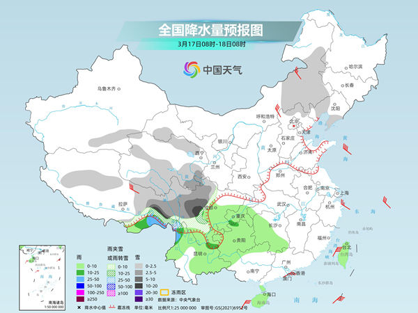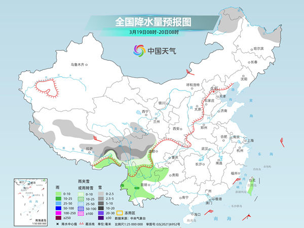 明天,西藏东部、川西高原等地部分地区有小到中雪或雨夹雪,局地有大到暴雪。四川盆地南部、贵州大部、云南、海南岛、台湾岛等地部分地区有小雨,其中,西藏东南部、云南西北部等地部分地区有中雨。