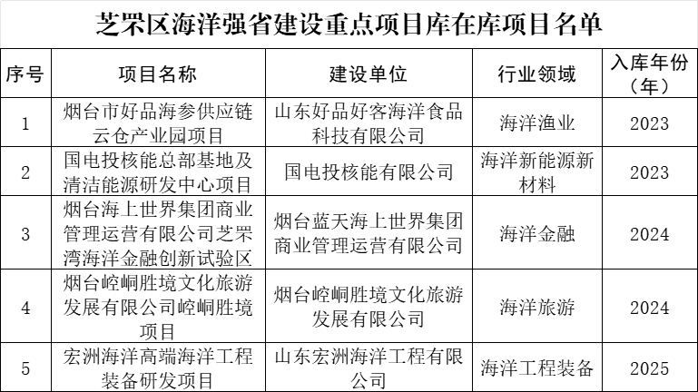 近日,省发展改革委印发了《2025年海洋强省建设重点项目名单》,芝罘区宏洲海洋高端海洋工程装备研发项目入选2025年度海洋强省建设重点项目。截至目前,芝罘区在库项目数量5个,位居全市前列。