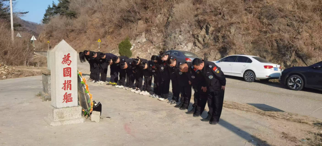 祭扫队伍前往新庄革命烈士纪念碑、大庄头村及国路夼村,怀着崇敬心情擦拭墓碑、清扫环境,敬献花圈鲜花。全体人员整齐列队,肃穆鞠躬,默哀悼念,深切缅怀革命先烈英勇事迹。