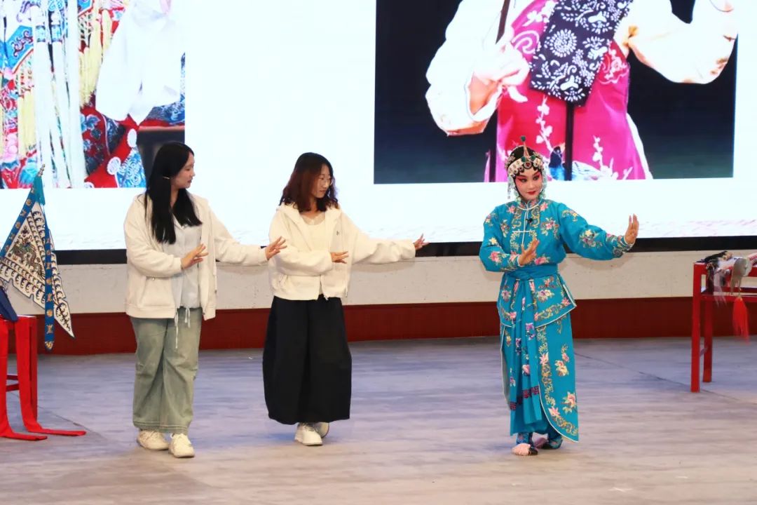 活动分为“京剧文化讲堂”“戏曲互动工坊”“经典剧目欣赏”三大环节。烟台市京剧院的老师们以生动的讲解、形象的演绎和专业的指导带领现场师生追溯京剧历史,了解烟台与京剧的深厚渊源,打破舞台边界,体验“唱、念、做、打”的韵味,感受京剧艺术的魅力。演出团队献上经典武戏《三岔口》,“摸黑对打”的精湛技艺赢得了全场掌声。