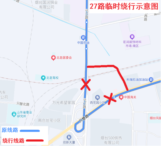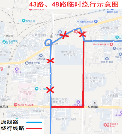增加:齐丰化工(单向)(路北)、烟台茂群二手车交易市场站点。