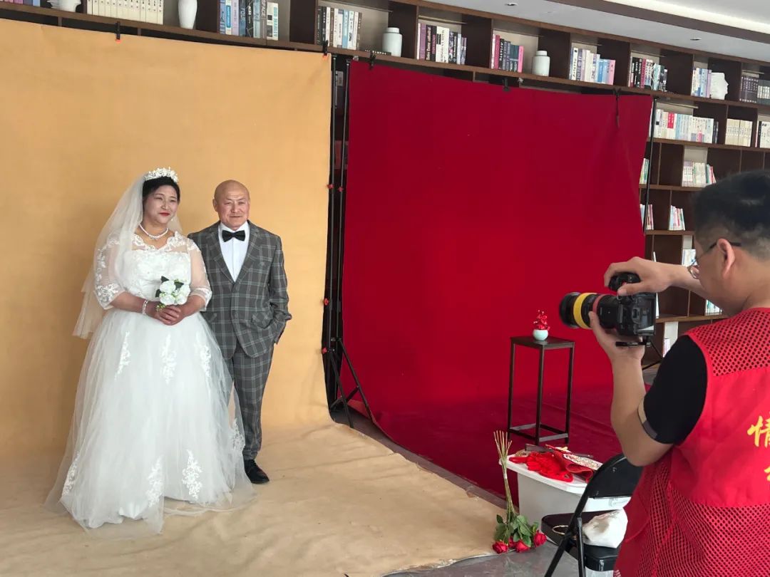 活动现场,化妆师为老人们精心梳妆,摄影师耐心引导他们进行拍摄。66岁的李大爷身穿西装,略显紧张地牵着老伴的手:“我们结婚时连照片都没拍,她跟着我吃了一辈子苦。今天看她穿婚纱的样子,好像又回到了40年前她嫁给我的那天。”王大妈则看着镜子里的自己红了眼眶:“没想到老了还能圆了我的婚纱梦,这是我收到过最珍贵的礼物,特别有纪念意义。”
