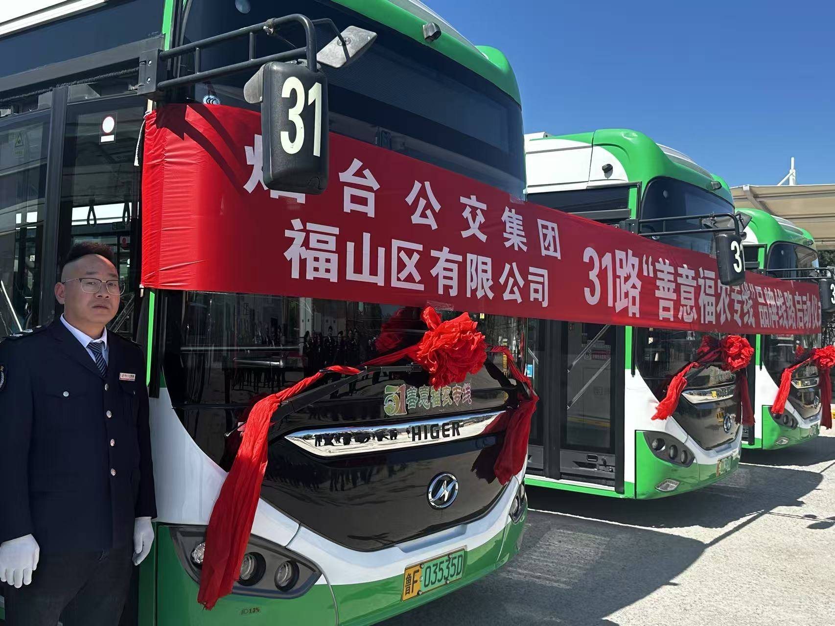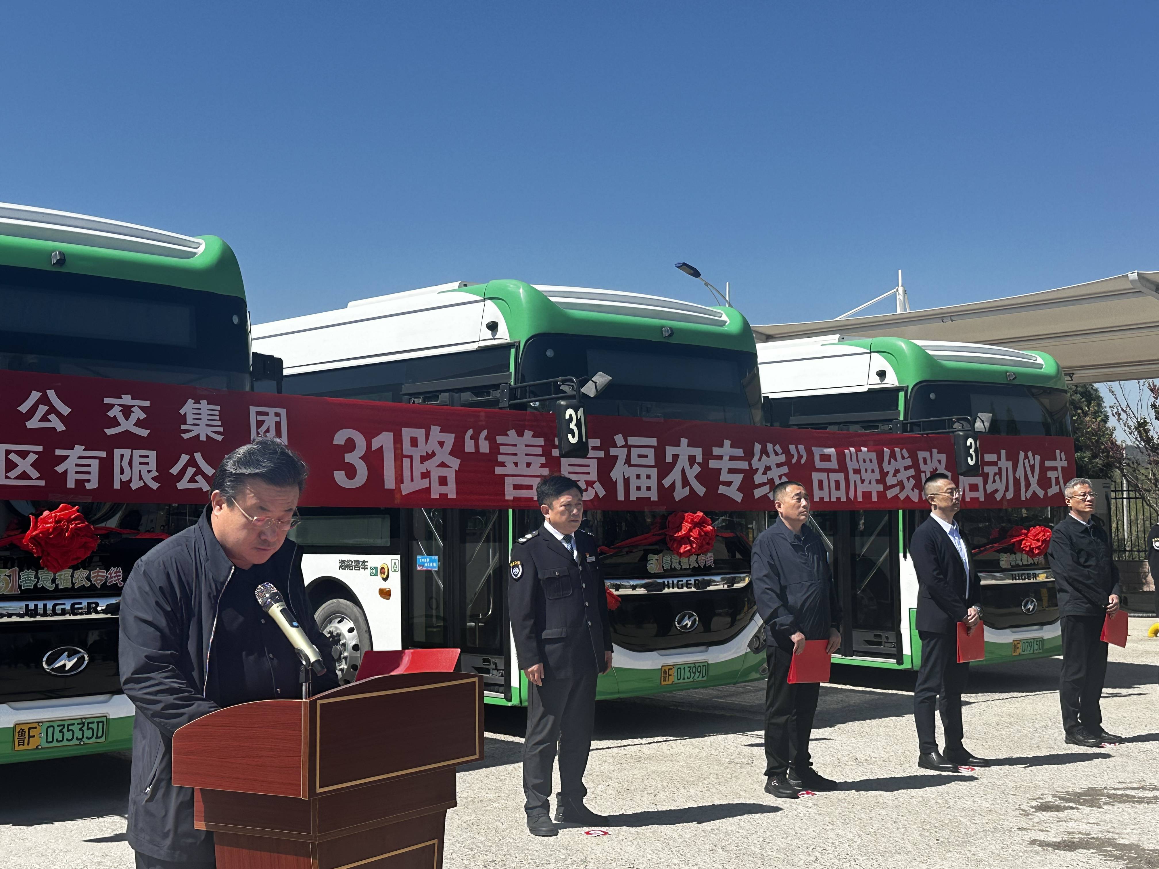烟台融媒4月28日讯(记者 邹春霞 通讯员 王超 摄影报道)今天上午,在福山区高疃公交场站,举行了“31路善意福农专线”品牌线路开通仪式。