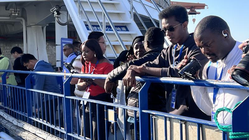 步入海洋渔业科普展厅,仿佛穿越到了未来海洋世界。蛟龙号VR体验舱带人身临其境感受深海探险;“深海电梯”通过全息投影技术模拟海洋下潜过程;AI互动装置详细解读海洋生态与渔业科技……冈比亚国家广播电视台记者卡迪嘉·博库姆说:“我喜欢这里的高新科技,既环保又高效,实在太赞了!”