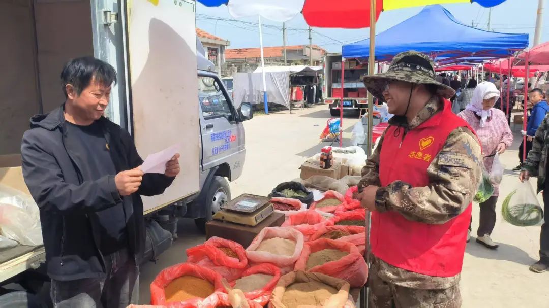 蛇窝泊镇利用大集人流量大的特点,开展“五一树新风 文明进大集”活动,志愿者用方言讲解移风易俗案例,倡导婚事新办、丧事简办,推广文明新风方式。