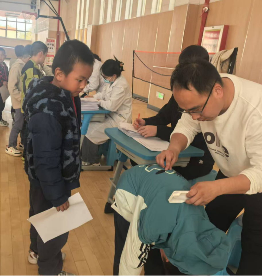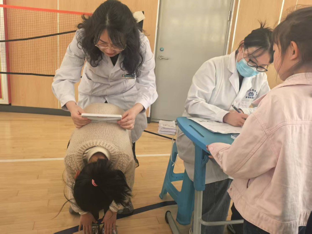 在筛查现场,专业团队以“早发现、早干预”为核心,采用“目测观察-体格检查-脊柱侧弯仪检”三级评估体系,走进莱山区多所中小学为学生提供免费的脊柱侧弯筛查,精准识别早期脊柱异常。并为学生建立个人健康档案,经筛查和评估符合条件的干预对象,医护人员现场提供个性化建议,100%纳入防控监测管理系统。