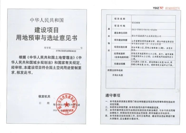 创业南路建设项目在2025年4月30日取得《建设项目用地预审与选址意见书(建字第3706132025XS0004532号)》。根据《行政许可法》《城乡规划法》等法律法规要求,现将已批准的用地预审与选址意见书相关内容向社会公布。