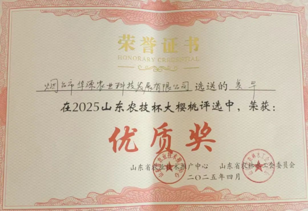 近日,2025年“山东农技杯”大樱桃品鉴暨种植技能竞赛在潍坊市临朐县圆满收官。在这场汇聚全省优质果品的赛事中,招远市农业技术推广中心选送的“美早”大樱桃从120余个参赛样品中脱颖而出,斩获优质奖;烟台市华源农业科技发展有限公司技术员王巍志,作为本次获奖樱桃的种植者获评“山东省大樱桃种植能手”称号。此次获奖,为招远市果业在品种培优、品质提升、品牌打造的全产业链提质增效进程中,注入了强劲的创新动能与发展活力。