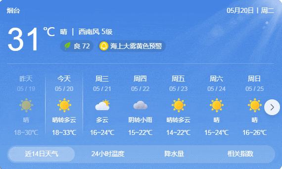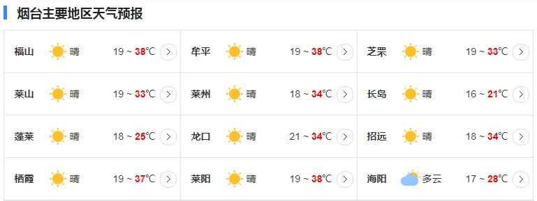 最高气温:聊城、鲁中和鲁南地区35℃~37℃,沿海地区22℃~26℃,其他地区30℃~34℃。
