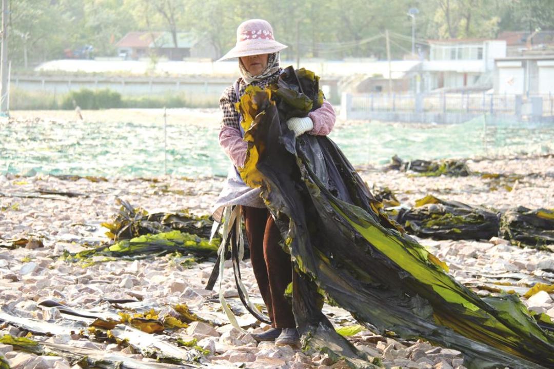 5月的大钦岛,山间、海滩、路边、晒场上的海带绵延成一片片“绿色的海洋”,将“鲜花海岛”浸染成一幅素雅的水墨画卷。